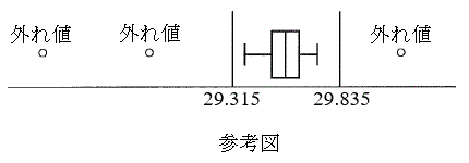 [2] 以下の問題を解答するにあたっては、与えられたデータに対して、次の値を外れ値とする。