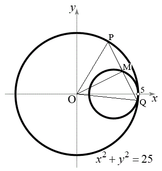・・・A P,Qはxy平面上で、原点を中心とする半径5の円周上の点です。
