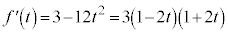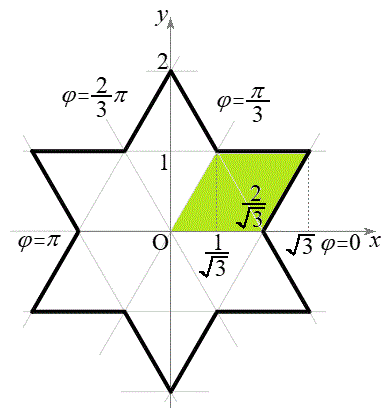 が動きうる範囲は、右図太線で囲まれた部分(境界線を含む)です。この図形は原点に関して点対称なので、