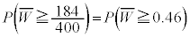 無作為に選ばれた400人のうち、184人が合格者であった。いま、帰無仮説が正しいと仮定する。標本の大きさ