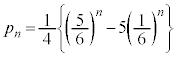 点P,Qを数直線の原点におき、1個のさいころを投げて出た目に応じてP,Qを動かす。偶数の目が出たときはPを正の向きに1だけ動かし、5または6の目が出たときはQを正の向きに1だけ動かす。たとえば、6の目が出たときはP,Qをともに正の方向に1だけ動かす。PとQの距離が初めて2となるまでさいころを投げ続けることとし、PとQの距離が2となったら、それ以降はさいころを投げない。n回さいころを投げてPとQの距離が2となる確率を