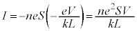 円柱型の抵抗器(長さL,断面積S,自由電子の数密度n),内部抵抗の無い電池(電圧V),スイッチを図1のように接続する。スイッチを入れると、電池は抵抗器内に一様な電場をつくり、自由電子(質量m,電荷