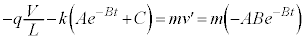 の時間微分であることを使って、定数A,B,Cを求めよ。[m,k,e,V,L]