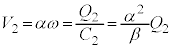 (3) 十分時間が経過した後、導体棒は一定の角速度 で回転し続けた。この角速度 の大きさを V , α , l , B , R から必要なものを用いて表せ。符号は問わない。 V 設問U (3) のように導体棒が角速度 で回転している状態で , スイッチを端子 Y に切り替え、容量 を持つコンデンサー 1 に接続する。導体棒の回転は徐々に緩やかになり、十分に時間が経過した後、一定の角速度 で回転し続けた。このとき、コンデンサー 1 に蓄えられているエネルギーを , α , l , B , から必要なものを用いて表せ。ただし、最初はコンデンサー 1 には電荷は蓄えられていなかったものとする。 W 設問U,Vの操作の結果は、図 2-2 のように、端子 O-P 間の部分を仮想コンデンサー ( コンデンサー 2) とみなすことでも理解できる。コンデンサー 2 は実際のコンデンサーと同様の性質をもつ。つまり、端子間の電圧 ,仮想的な容量 と仮想的な電荷 の間の関係式、および蓄えられる静電エネルギーは、実際のコンデンサーと同じ式で表される。